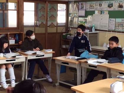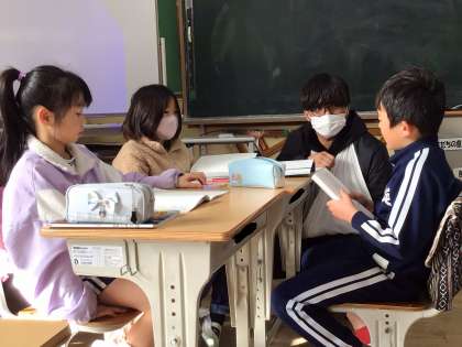 文章から読み取ったことを根拠に、グループや学級全体で、意見の交流をしていました。