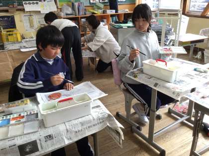 裏側から着色している子どももいました。