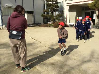 わらべうたに合わせて、縄跳びを楽しんでいました。