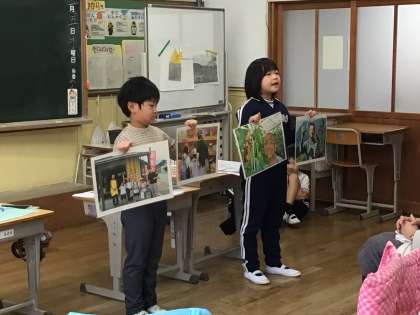 2年生は、町探検で見つけた素敵なことを発表しました。