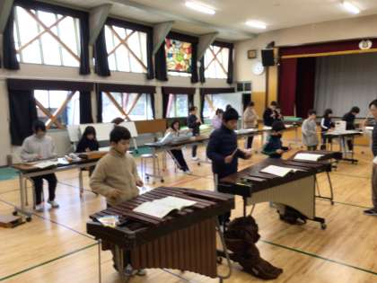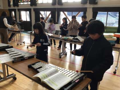 「茶色の小びん」の合奏に取り組んでいました。