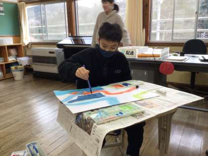 絵の具の塗り方を工夫したり、画材を変えたりして、想像した世界を描いていました。