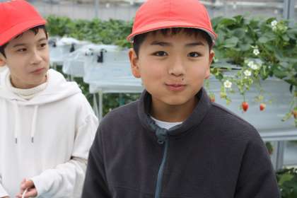 ハウスでのイチゴ栽培の様子や、イチゴ栽培を通して観光にも目を向けている取組について学びました。