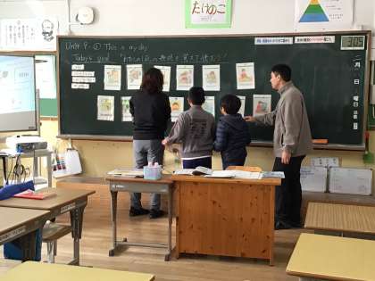 日課をジェスチャーで伝え、英語で答えるゲームをしていました。