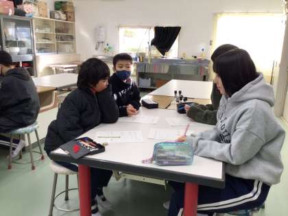 3年生から6年生の学級代表と委員会の委員長が集まって、学校生活を振り返り、来年度に向けての提言を考えていました。