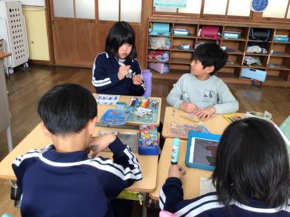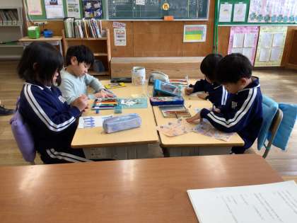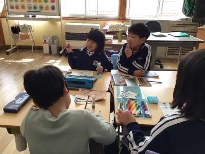 6年生に喜んでもらえるように、何かをみんなで作っていました。