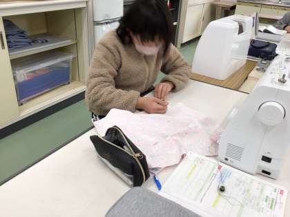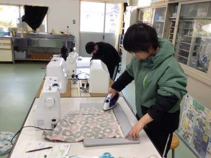 ミシンを使って、ランチョンマットの製作に取り組んでいました。