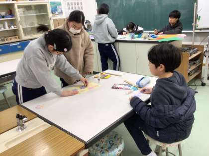 工作クラブは、6年生と3・4・5年生に分かれて、メッセージを作っていました。