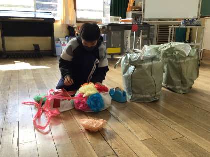6年生の卒業を祝おうと、5年生が中心となって「6年生を送る会」の準備をしています。