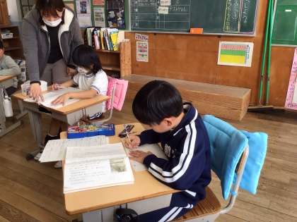 「お手紙」という物語を読んで、場面の様子をみんなで確かめていました。