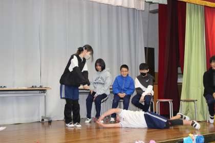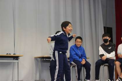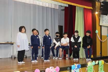 6年生が主人公のお話の読み聞かせや6年生との物まね対決、クイズや寸劇など、各学年の趣向を凝らした出し物で大盛り上がりでした。