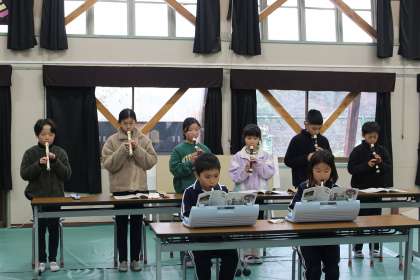 3・4年生は「茶色の小びん」を演奏しました。