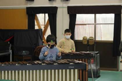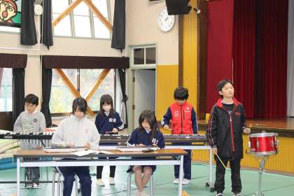 リコーダー、鍵盤ハーモニカ、鉄琴、木琴、キーボード、小太鼓の6種類の楽器で合奏しました。
