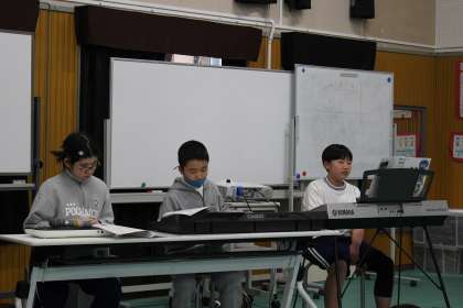 5・6年生はリコーダーとキーボードで「威風堂々」を演奏しました。