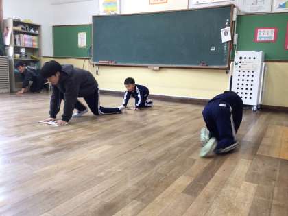 教室にある物を廊下に出して、念入りに水拭きをしました。