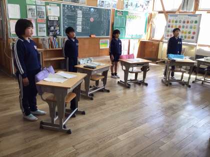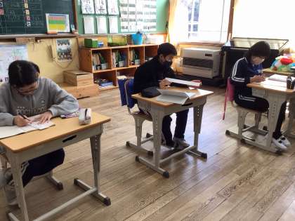 今日は、一行詩を書いているクラスや卒業式の送る言葉の練習をしているクラスがありました。