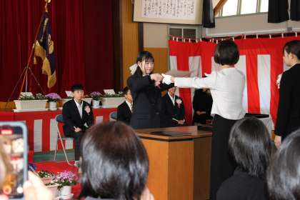 惜別の雨があがり、春のやわらかな光のさす中での式となりました。