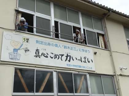 子どもたちの声にかわって、電気ドリルの音が響いています。