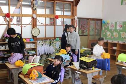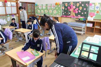 学用品のしまい方やランドセルの片づけ方を教わっていました。