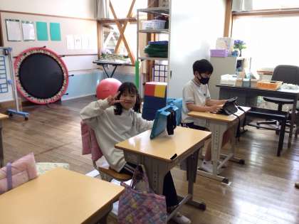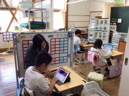 自分の好きなものや交流学級の先生など、写真や動画も入れて作っていました。