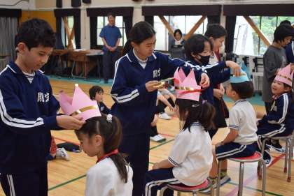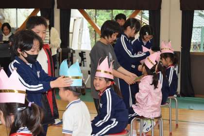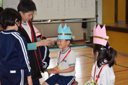 最後に王冠のプレゼントや、2〜6年生からのメッセージを1年生に渡しました。