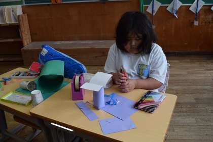紙で開いたり閉じたりする仕組みをつくって、動きのある作品を作りました。