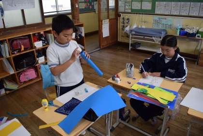 授業の様子 公開日 2025/05/01 更新日 2025/05/01 各学年から 1年生は、初めての道徳を行いました。自分の意見をしっかり発表できるようにアンパンマンとばいきんまんを例に出し、それぞれの頑張りを出し合いました。 4年生は、図工でボールを使って立体的な作品の作り始めました。どんな作品ができるか楽しみです。 6年生は、図工で外に出て、春の景色をスケッチしました。運動場の風景、藤の花、花壇の花などを描きました。