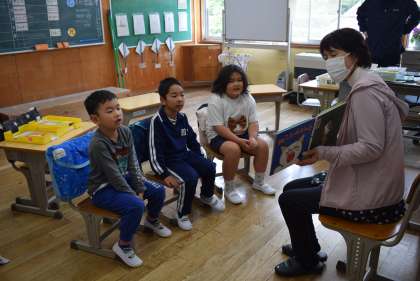 今年度もハグまーまの方たちによる読み聞かせが始まりました。子どもたちは、久しぶりの読み聞かせでとても集中して聞いていました。