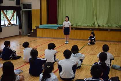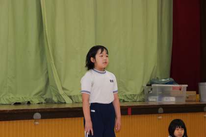 今年度もスピーチ集会が始まりました。3年生の2人が自分の紹介を全校の前で話しました。今年度初めてということで緊張したと思いますが、堂々と話しました。