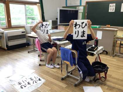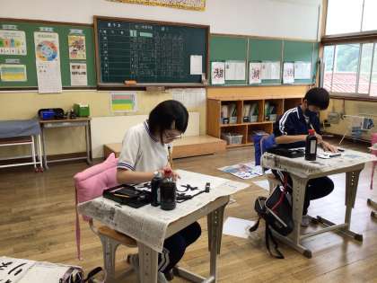 書写で「ひまわり」を書きました。今日、初めて取り組む題材のため、ひらがなの丸みや文字のバランスに苦労していましたが、集中して取り組みました。