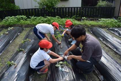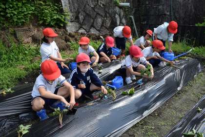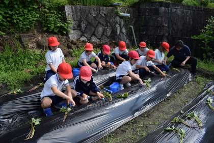 今年度は3・4年生が中心となってサツマイモを育て、秋に全校で芋ほりをして味わう予定です。
