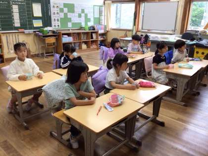 毎週火曜日の朝に、フッ化物洗口を行っています。