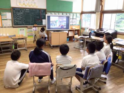 足助小学校、冷田小学校の5年生とオンラインで交流会を行いました。