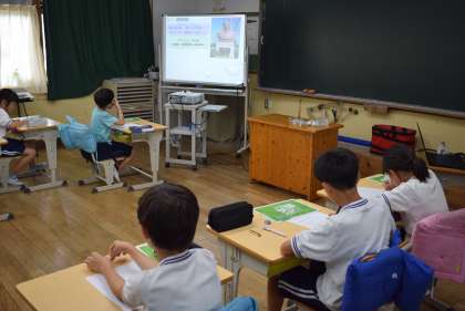 4年 社会「水道教室」 公開日 2025/06/11 更新日 2025/06/11 各学年から 今日は、豊田市水道サービス協会から講師をお招きし、水道教室を行いました。水道が整備された日本の歴史や自分たちが普段飲んでいる水がどこからどのように運ばれているのか。また、もし災害があったときの水の確保の仕方などあらゆることを学習しました。子どもたちはメモを取りながら、真剣に話を聞いていました。 4年