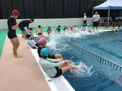 雨は降っていないものの、曇り空で肌寒さを感じる中での水泳学習となりました。