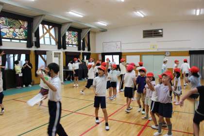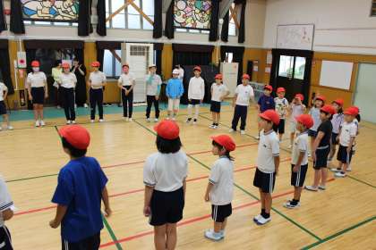 今日は、フレンドリー委員会で企画した全校遊びを行いました。あいにくの天候のため、場所は集会室でしたが、「猛獣狩りに行こうよ」で盛り上がりました。