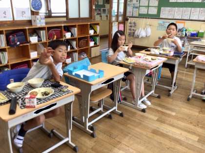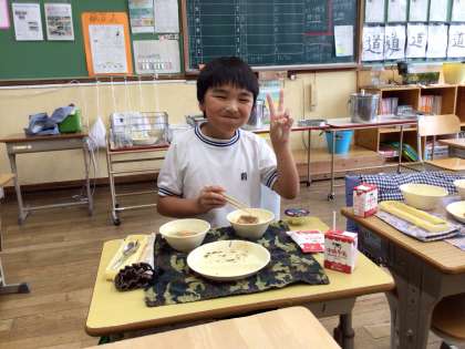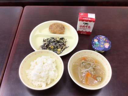 今日の給食では、そうめんの代わりにビーフンを使って天の川に見立てた「天の川汁」と、星型のマカロニとひじきで、夜空に広がる星空をイメージした「七夕サラダ」、星型の「七夕ゼリー」が提供されました。