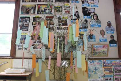 今日は、七夕。朝の集会の校長先生のお話は、七夕についてのお話でした。クイズ形式で、七夕について学びました。子どもたちは、先週から今日まででたくさんの願い事を短冊に書きました。