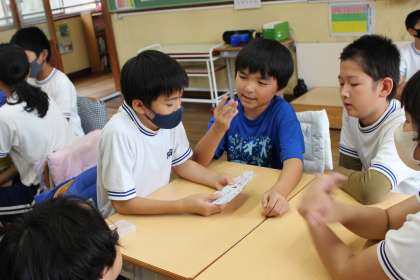5,6年生 お楽しみ会 公開日 2025/07/18 更新日 2025/07/18 各学年から 5,6年生合同で、お楽しみ会をしました。全員一致(お題のものを連想し一致させる)ゲームとカードゲームで盛り上がりました。 5年 6年