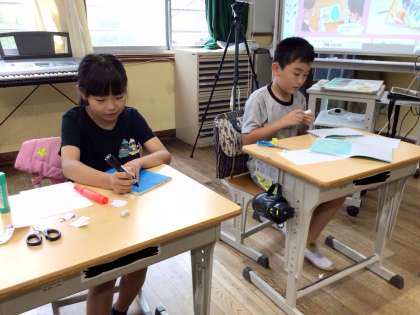 今日は、これまでにつくった模様をまとめて「もよう図鑑」をつくっていました。