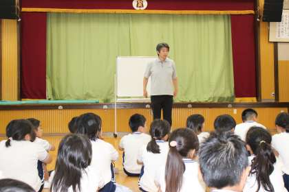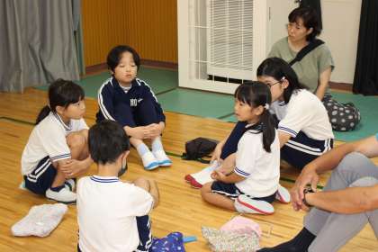 今日の朝の集会は、掃除の縦割り班で「夏休みに楽しかったこと、頑張ったこと」をテーマにデスカッションしました。