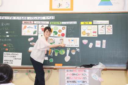 今日は、栄養教諭の川合先生を講師にお招きし、「3つのグループをバランスよく食べよう」というテーマで授業を行いました。自分の好きな食べ物、嫌いな食べ物がどのグループに入るのかを楽しみながら考え、バランスよく食べることの大切さを学びました。