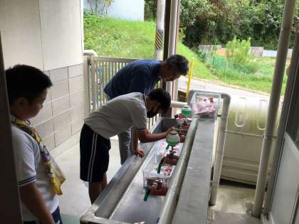 牛乳パックのビニール部分を剥がしていました。