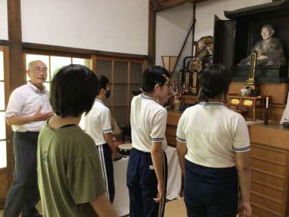 6年生 総合的な学習の時間「鈴木正三を広めよう」3 公開日 2025/09/16 更新日 2025/09/16 学校の特色ある活動 正三和尚建立の恩真寺では、鈴木正三座像を見ました。 則定の心月院にある座像より、若い頃の正三和尚の姿だそうです。 座像と対面後は、顕彰会の会長さんから「郷土の偉人 鈴木正三から学ぶこと」というテーマでお話を聞きました。 実際に正三和尚が過ごした地を訪れ、これまでの学びをさらに深めることができました。