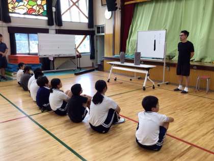 最初は、陶器の作り方や陶器創作への思い、小中学校等の学習が創作活動に生かされていることなど、作品づくりを通した生き方についてお話をしていただきました。