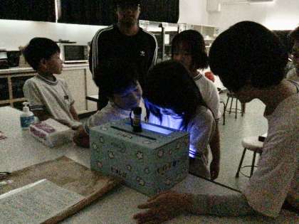 いつも通り手を洗った後、ブラックライトを使って洗い残しをチェックしました。