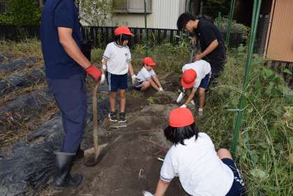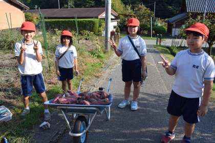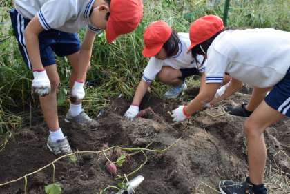 3年生 さつまいも掘り 公開日 2025/10/01 更新日 2025/10/01 特色ある学校づくり推進事業 今日は、3年生はさつまいもをしました。かなり大きなさつまいもに育っていました。みんな一生懸命に収穫し、笑顔でした。 3年 特色ある学校づくり
