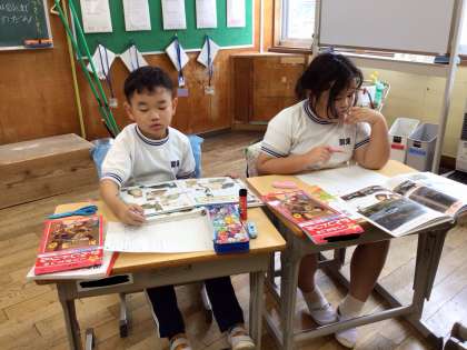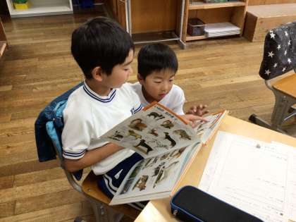 ホワイトタイガーやライオンなど、自分が知りたい動物について調べ、分かったことを整理していました。