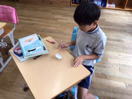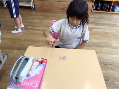 こまにつけた点が、回っている時にどう見えるか、点の軌跡を観察していました。