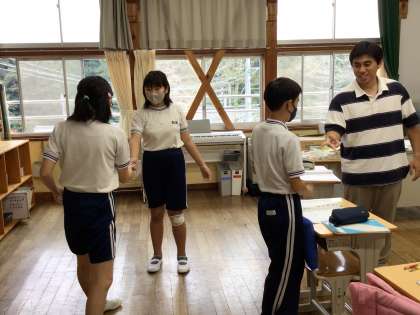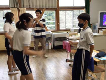 授業のウォームアップとして、動物じゃんけんをしていました。
